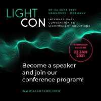 10.12.2020Deutsche Messe AGLightCon is the first solution-oriented cross-material and cross-technology platform for all user sectors of lightweight construction.Neue Runde im Wettbewerb zum »Werkzeugbau des Jahres«: Erste Fragenauswahl bis 1. März und vertiefende Fragen bis 1. Mai 2021