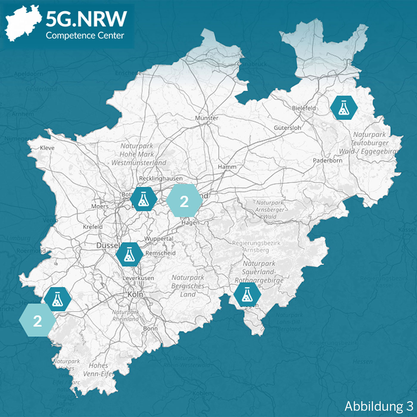 Abbildung 0 3: Überblick der Test- und Demozentren in NRW (5g.nrw/interaktive-karte)