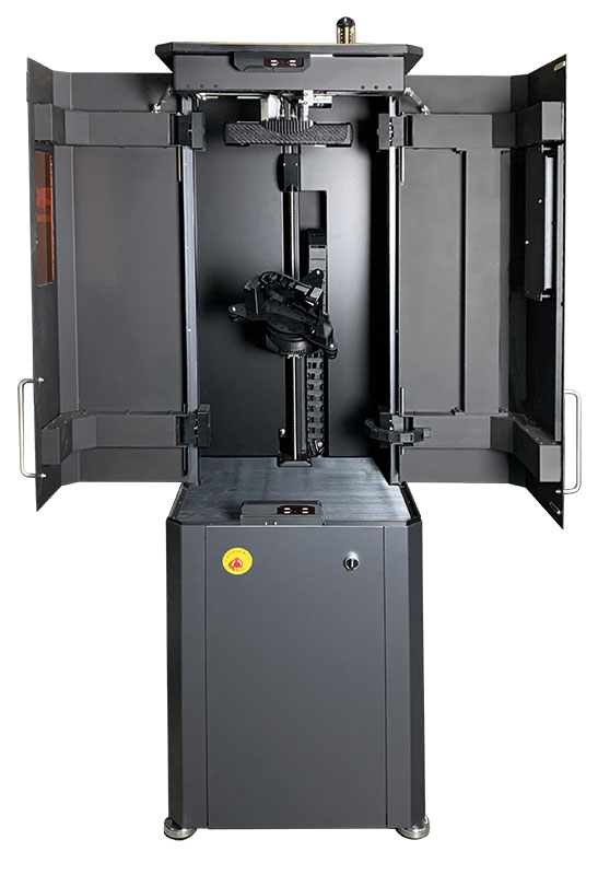 Abbildung 1: Messvorrichtung mit Vacuum-Spannsystem für ein Kunststoff-Bauteil. 360°Grad rotation und ein schwenken ermöglicht eine komplette Erfassung der Abmessungen.
