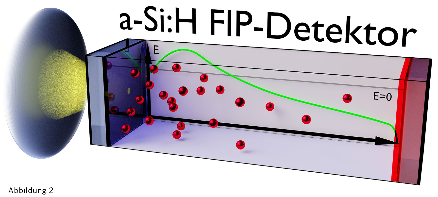 Abbildung 2: Modell Darstellung der Feldabschirmung durch geladene Defektzustände in einem amorphen Silizium basierten FIP-Detektor als Grundlage der 3D Bildgebung.