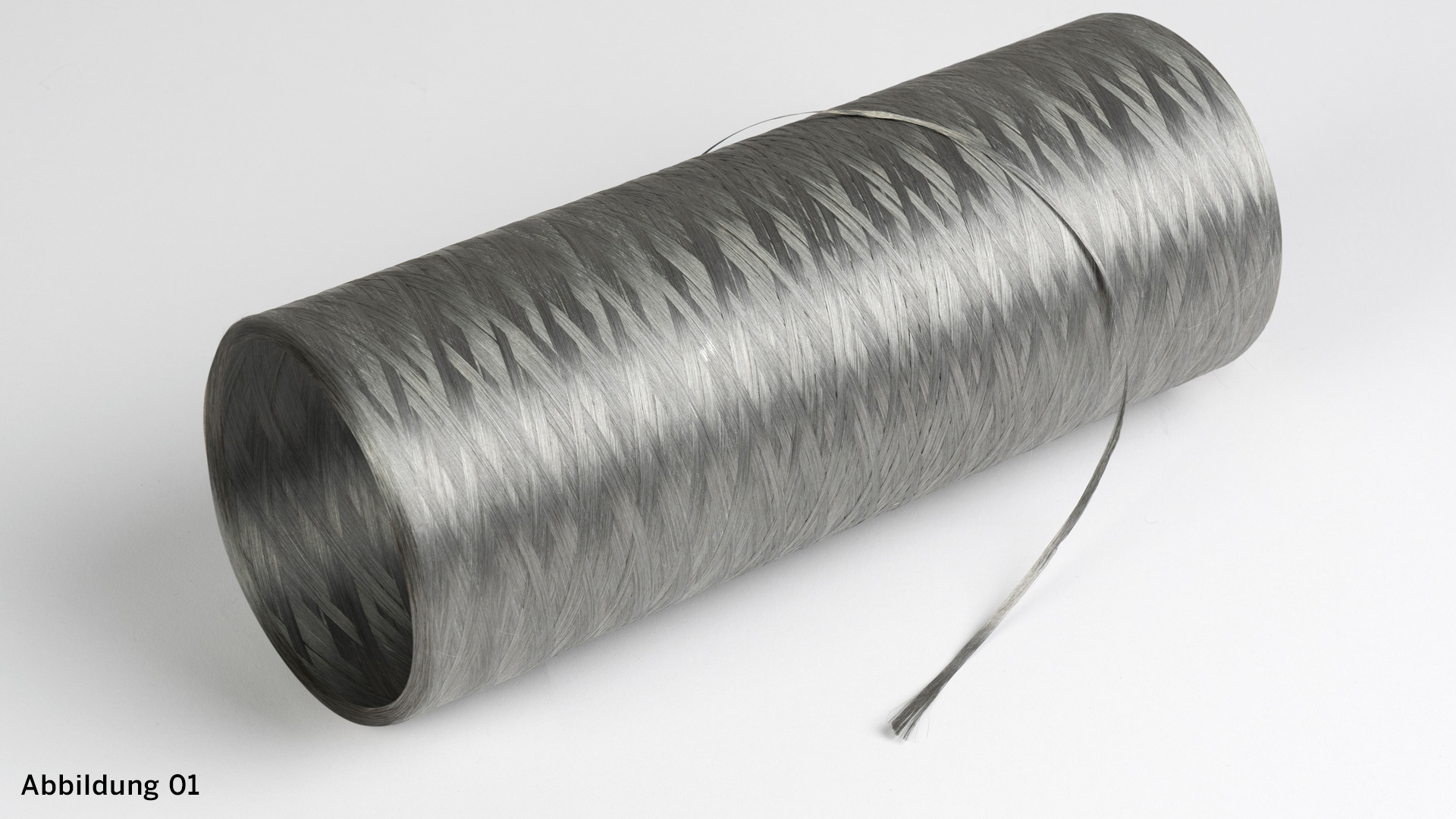 Abbildung 1: AluCoat ist eine hochfunktionale Faser, bei der eine Glas- oder Basaltfaser mit Aluminium beschichtet ist, wodurch ein leichtes, leitfähiges und abschirmendes Material für industrielle Anwendungen entsteht. ©FibreCoat