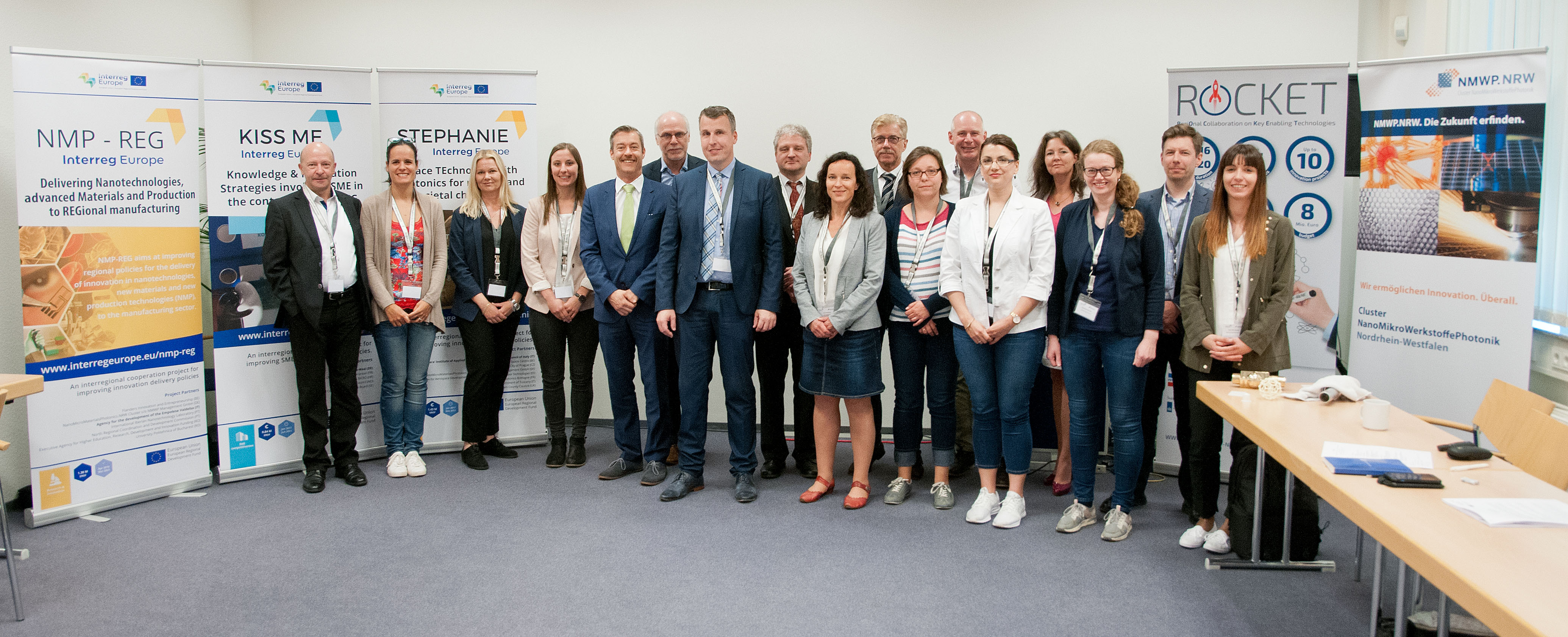 Das Interreg Europe-Projekt „NMP-REG“ (Delivering Nanotechnologies, Advanced Materials and Production to Regional Manufacturing) startete am 1. April 2016 und hat eine Laufzeit von fünf Jahren. Das Projektkonsortium umfasst sieben Partner aus den fünf europäischen Regionen Toskana/Italien, Flandern/Belgien, Norte/Portugal, Bukarest/Rumänien und Nordrhein-Westfalen. NRW ist im Konsortium durch den Cluster NMWP.NRW vertreten. NMP-REG wird mit Fördermitteln des Europäischen Fonds für Regionale Entwicklung (EFRE) unterstützt.