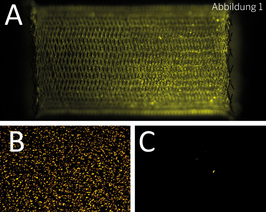 Diese Wirkung basiert auf einer neuen Werkstoffbeschichtung des Stents, die sich an der Herstellung biologischer Stoffsynthesen und/oder Prinzipien des biologischen Materialaufbaus orientiert und im besten Falle zu einer aktiven Bildung neuer Gefäßinnenhaut beitragen kann. Derartig beschichtete Stents können einen wichtigen Beitrag zur Behandlung und Vorbeugung des hämorrhagischen Schlaganfalls und anderer neurovaskulärer Erkrankungen liefern.