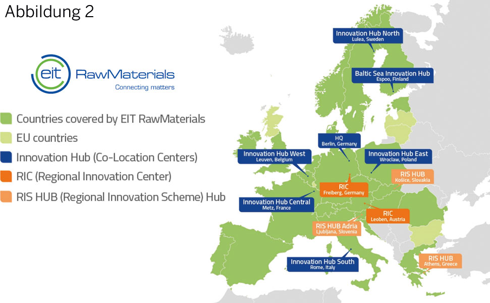 Aktuell sind über 120 Partner aus 22 Ländern entlang der gesamten Rohstoff-Wertschöpfungskette tätig und in sechs standortgebundenen Innovation Hubs, sog. Co-Location Centers, mit übergeordnetem Headquarter in Berlin organisiert. Unter Einbindung osteuropäischer Länder über zwei Regional Innovation Centers, kurz RICs, und drei Regional Innovation Scheme Hubs, ist so das weltgrößte pan-europäische Partnernetzwerk im Rohstoffsektor entstanden.
