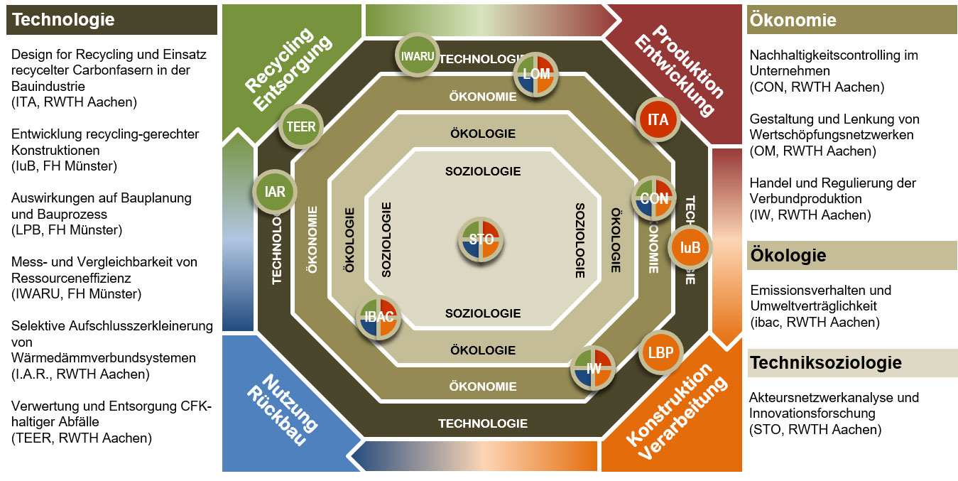 Abbildung: Das Kolleg umfasst ins-gesamt 11 Forschungsprojekte, angesiedelt in vier verschiedenen Disziplinen. © TEER, RWTH Aachen